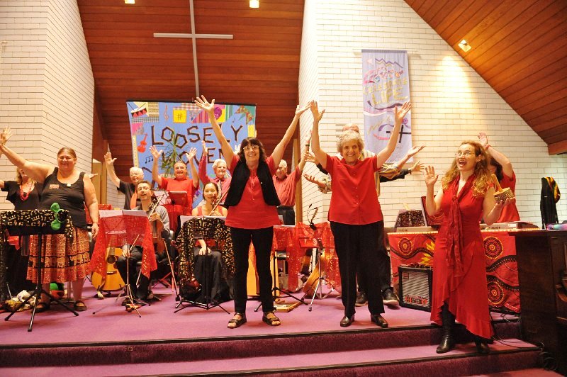 A very enthusiastic audience of nearly 100 applauded the new concert from “ Loosely Woven” which was performed by 22 musicians and singers at Avalon Baptist Peace Church on Saturday (29thMar). “ON THE ROAD ” is the concert that Wayne and Loosely Woven are at present taking to several country towns, and also to Canberra.